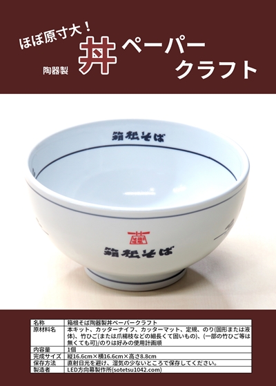 かつて箱根そばで使われていた陶器製の"そば丼"をペーパークラフトに